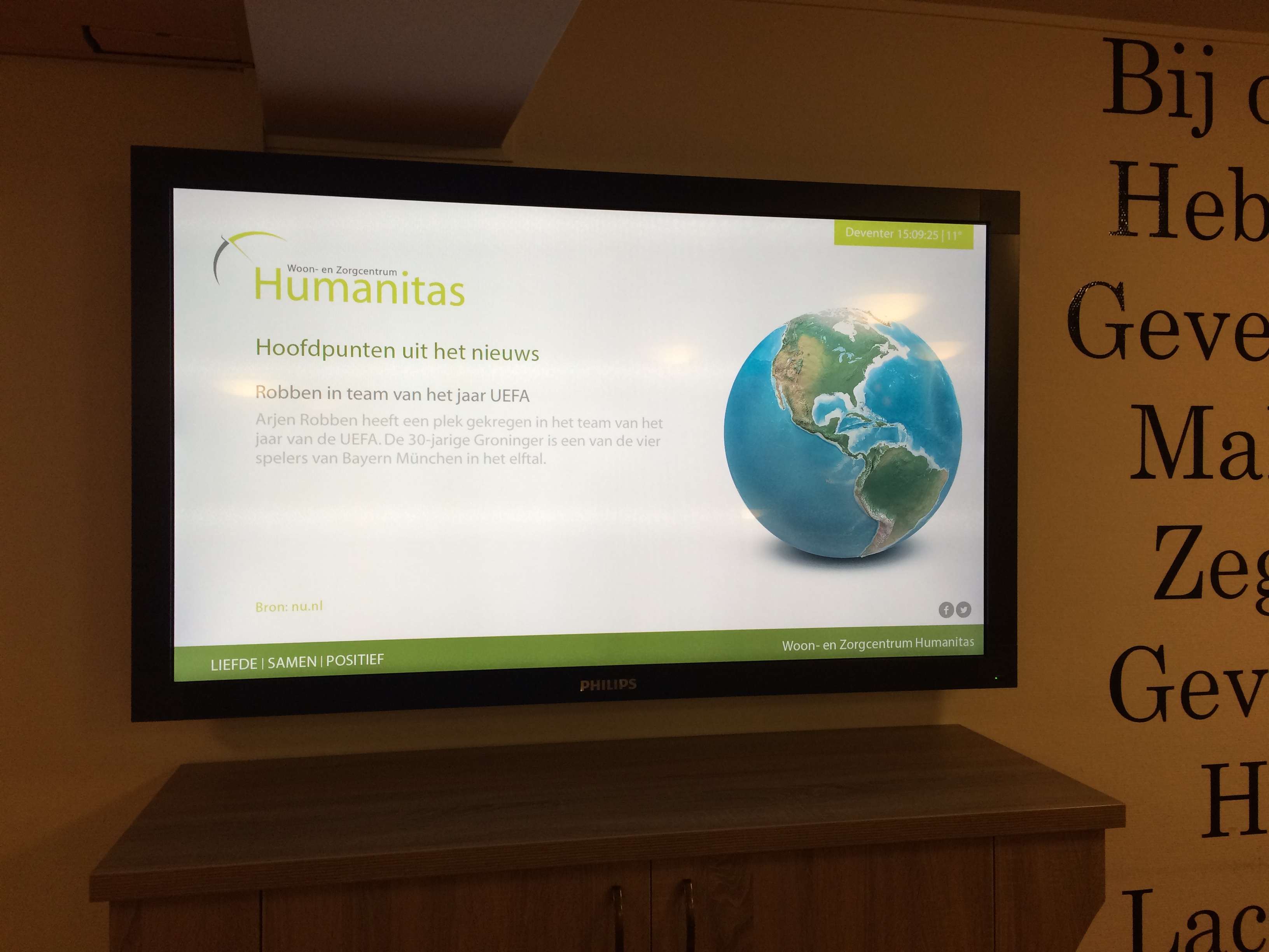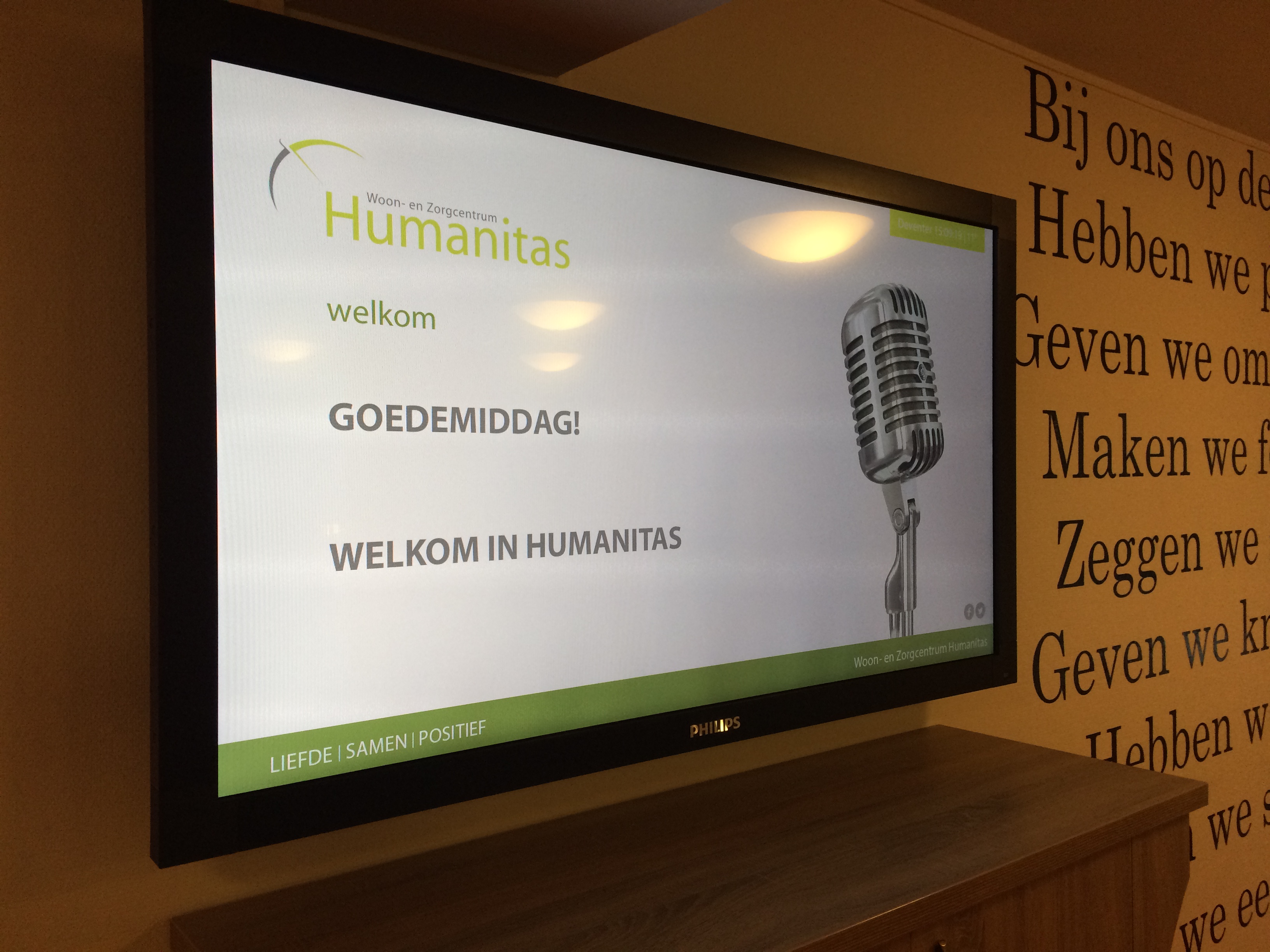 Narrowcasting systeem geplaatst op verschillende plekken door het pand.